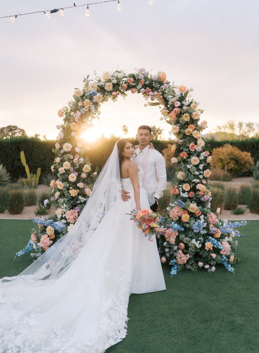 We rent high-end faux floral arches, pillars, and backdrops for your wedding day. Serving Scottsdale, Phoenix, Mesa, Gilbert and surrounding areas.